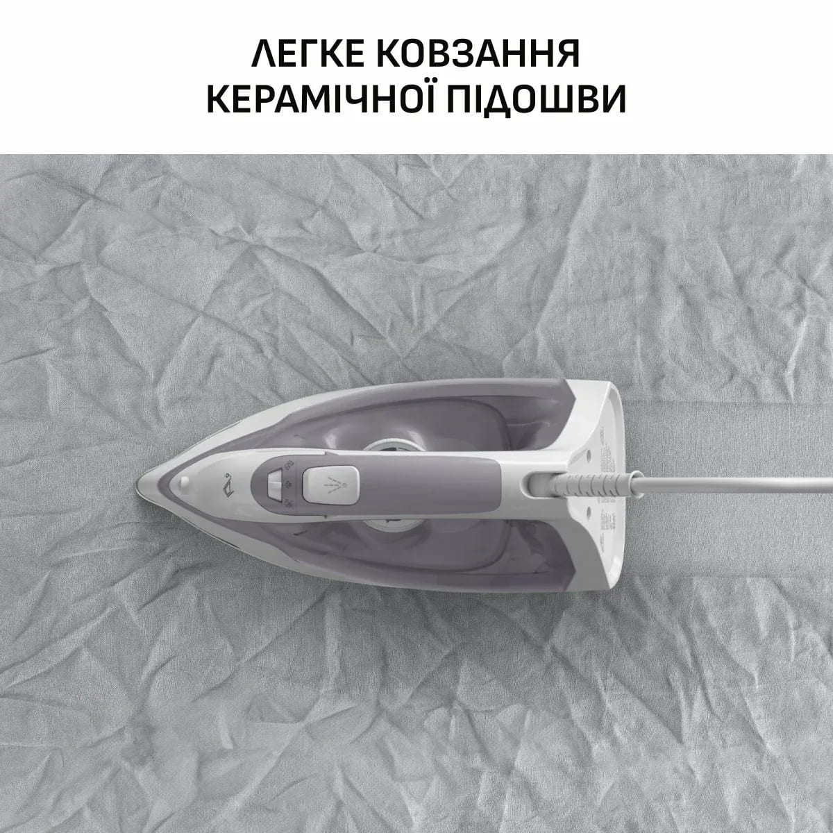 Керамічна підошва стійка до подряпин і забезпечує легке ковзання по різних тканинах, а також рівномірний розподіл тепла. Загострений носик полегшує роботу в зонах біля ґудзиків, швів і комірців. Прозорий резервуар для води об’ємом 240 мл дає змогу контролювати рівень наповнення, а шнур довжиною 1.9 м забезпечує зручність під час переміщення праски по дошці. Для догляду за внутрішніми елементами передбачено налаштування захисту від накипу.