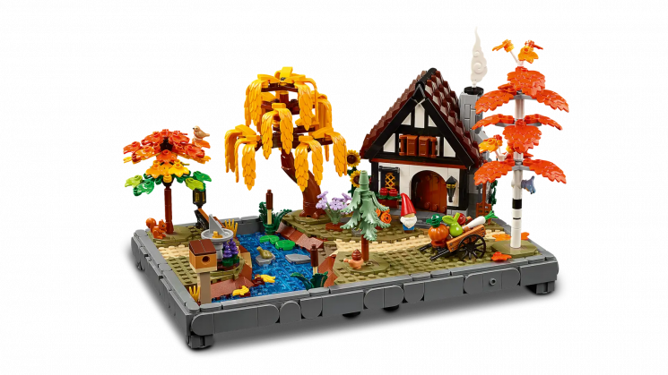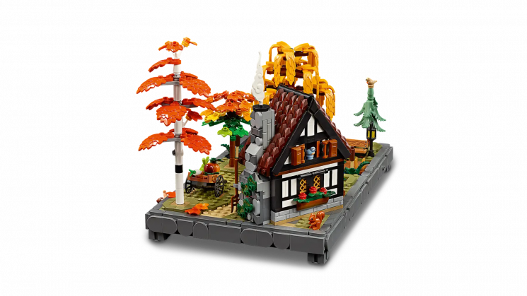 - РОЗМІРИ – Модель LEGO® Icons «Осінній котеджний сад» з 1102 деталей має розміри понад 19 см у висоту, 29 см у ширину та 18 см у глибину.