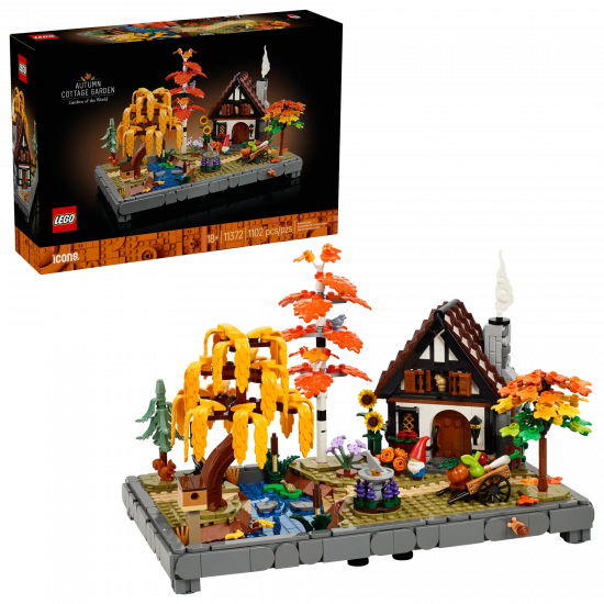- НАБІР ДЛЯ СКЛАДАННЯ МОДЕЛЕЙ САДОВОГО КОТЕДЖУ – Знайдіть час для усвідомленого проекту з набором LEGO® Icons Autumn Cottage Garden (11372) для дорослих шанувальників креативних конструкторів.