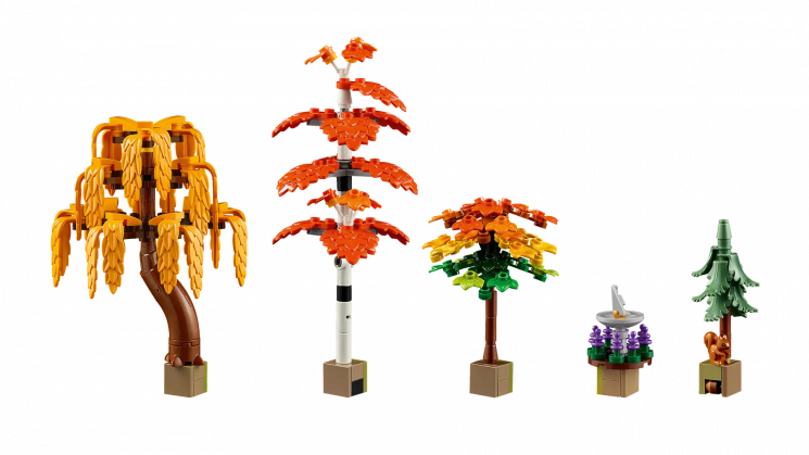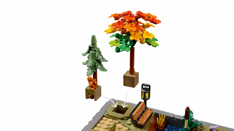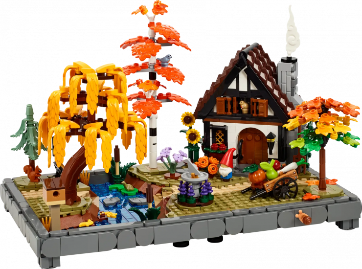Натхненний казковими будиночками, цей комплект до колекції «Сади світу» включає березу, плакучу вербу, блакитну ялину та клени, а також сезонні квіти. Серед інших особливостей – сонячний годинник, шпаківня, візок для овочів, садовий гном та струмок зі сходами. Будиночок із затишною кухнею та лісові істоти, включаючи малинівку та повзика, білку, жабу та равлика, додають завершальні штрихи до цієї моделі – ідеальний подарунок для дорослих шанувальників креативного декору дому.