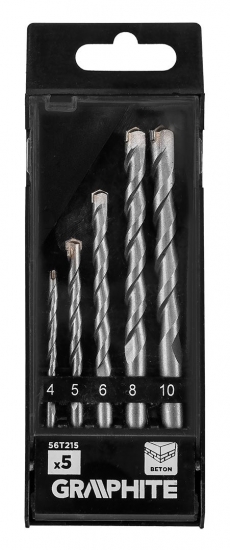 Набір свердел по бетону GRAPHITE створений для виконання точних і надійних отворів у твердих мінеральних матеріалах під час побутових та монтажних робіт. Продумана конструкція свердел забезпечує стабільне входження в матеріал і контрольований процес свердління, що особливо важливо під час встановлення дюбелів, кріплень і монтажних елементів.