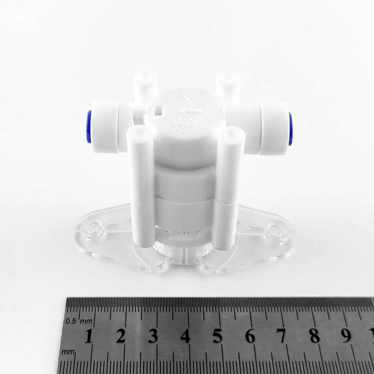 Корпус фітинга виготовлений з POM пластику, ущільнювачі — з NBR каучуку, що забезпечує стабільну роботу при штатних умовах експлуатації. Пристрій не потребує електроживлення та працює виключно за рахунок механічного принципу.