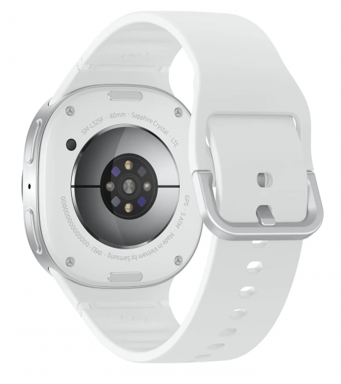 Samsung Galaxy Watch 8 40 мм e-SIM (L325) — компактний смарт-годинник у сріблястому корпусі з алюмінієвою рамкою. Круглий Super AMOLED-дисплей 1,34" із роздільною здатністю 438×438 пікселів і сапфіровим склом забезпечує чітке зображення за різних умов освітлення. Платформа Wear OS 6 з оболонкою One UI 8 Watch працює разом із чипсетом Exynos W1000, створеним за 3-нм техпроцесом. Модуль e-SIM і LTE забезпечує автономний зв’язок без постійного з’єднання зі смартфоном. Захист IP68 і відповідність MIL-STD-810H розширюють щоденні сценарії використання.