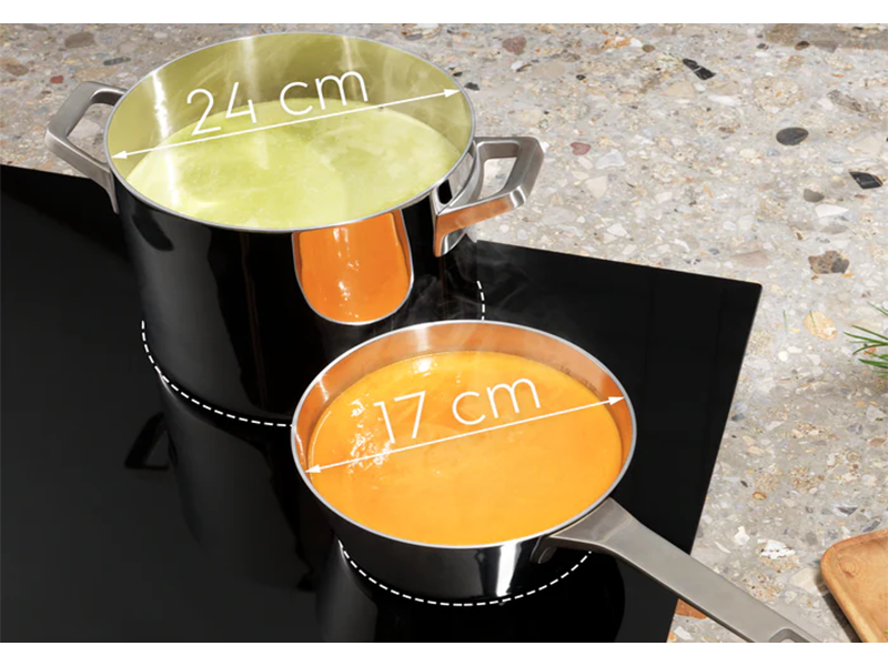 Індукційна варильна поверхня Electrolux EIV87671 орієнтована на гнучке керування простором готування та точне регулювання нагрівання. Технологія TotalFlex автоматично розпізнає розміри й форму посуду, формуючи активні зони без фіксованих конфорок. Шість індукційних зон із функцією швидкого нагрівання підтримують інтенсивну роботу з кількома стравами одночасно. Hob2Hood® бездротово узгоджує роботу з витяжкою, а індивідуальні таймери для кожної зони спрощують контроль процесу. Поверхня з конічною рамкою має стриманий вигляд і зручна для щоденного догляду.