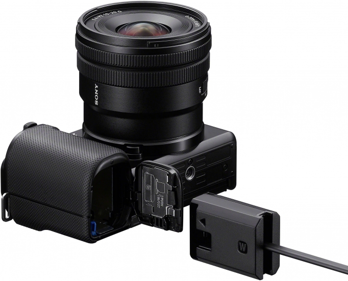 Зарядний пристрій Sony DC-C1 призначений для безперервного живлення цифрових камер через інтерфейс USB Power Delivery. Він сумісний з камерами, що використовують акумулятори NP-FZ100 або NP-FW50, та підходить для тривалих зйомок. Для роботи потрібне джерело живлення USB PD потужністю 65 Вт або більше та відповідний кабель. Конструкція передбачає стопорний гвинт для фіксації USB-кабелю. Світлодіодний індикатор інформує про стан подачі живлення та параметри підключення.