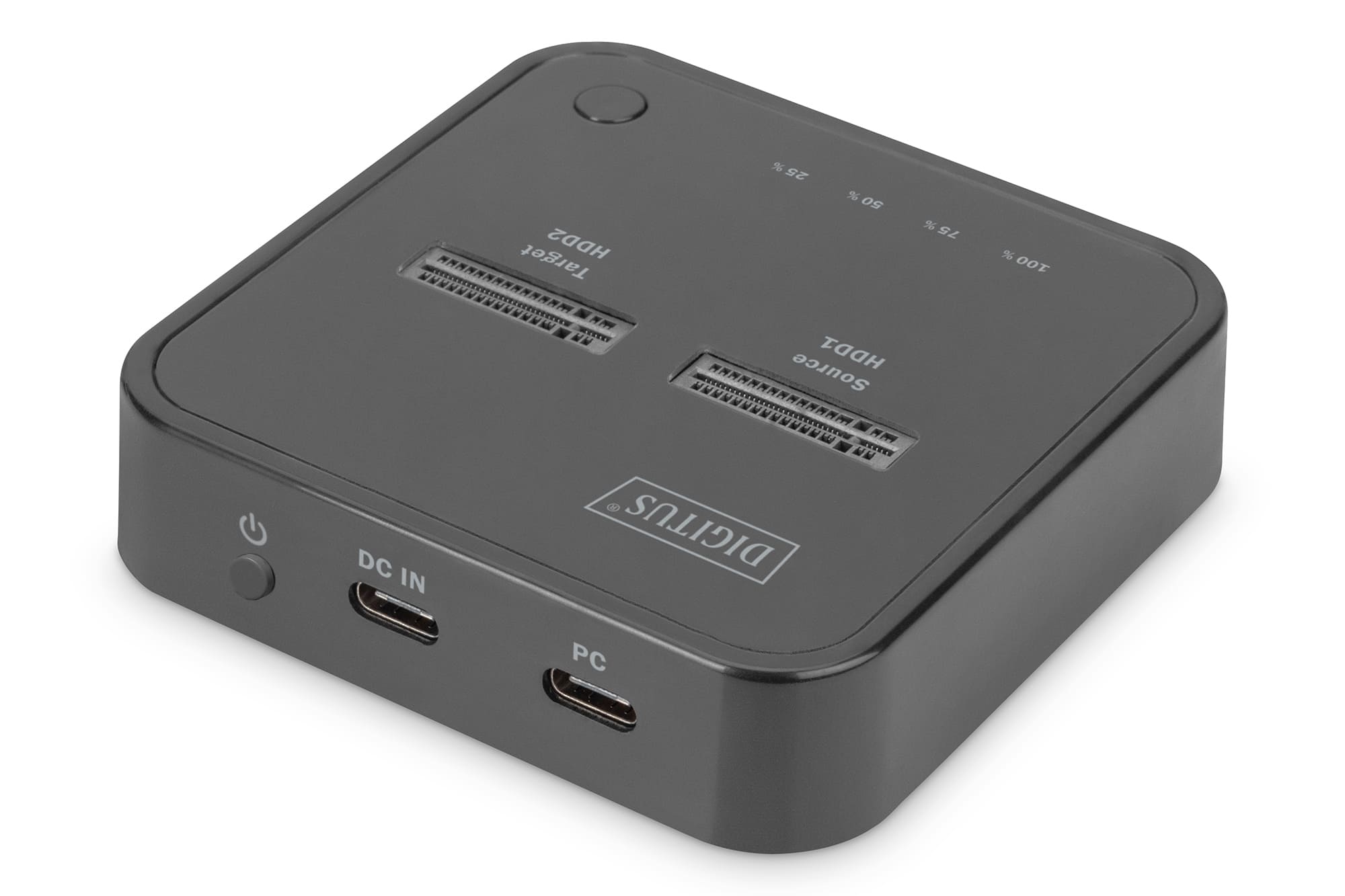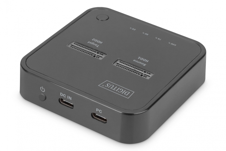 Вбудована функція автономного клонування дозволяє копіювати дані з одного SSD на інший без підключення до комп’ютера — процес запускається натисканням кнопки на корпусі. Хід копіювання відображається світлодіодними індикаторами з рівнями 25%, 50%, 75% і 100%. Також підтримується режим роботи з двома накопичувачами одночасно та гаряча заміна SSD під час роботи пристрою.