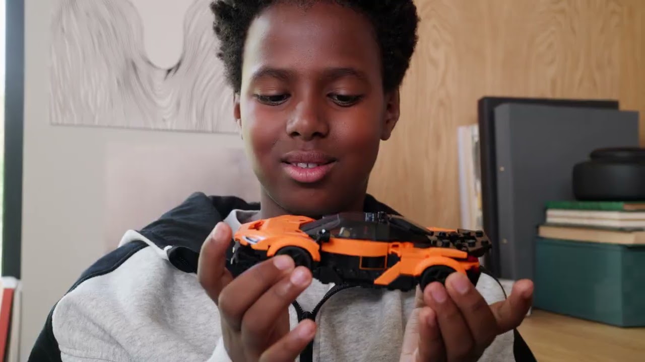Ця модель автомобіля McLaren має регульоване заднє крило для крейсерського руху або перегонів, задній двигун, кабіну пілота, екран інформаційно-розважальної системи та повітрозабірники з боків і на капоті. Іграшковий перегоновий автомобіль також включає мініфігурку водія в екіпіруванні McLaren з шоломом, перукою й гайковим ключем, який також можна використовувати для наклеювання наліпок і розділення кубиків.