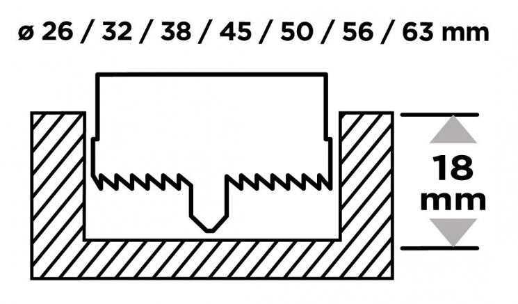 Набір коронок GRAPHITE створений для ефективного вирізання отворів у деревині, фанері, ДСП та МДФ. Загартовані зубці забезпечують чистий різ і зменшують зношування під час інтенсивних монтажних або столярних робіт. Робоча висота коронок 25 мм дозволяє виконувати отвори в масивних заготовках і товстих плитних матеріалах, де стандартної глибини різу недостатньо. Діапазон діаметрів 26–63 мм охоплює найпоширеніші розміри для встановлення фурнітури, прокладання кабелів і створення технологічних отворів.
