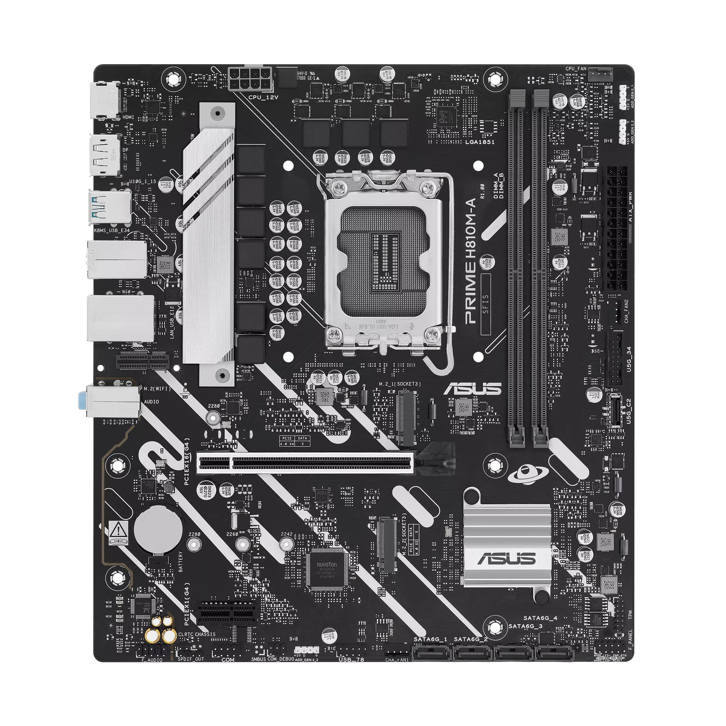 Материнська плата ASUS PRIME H810M-A-CSM призначена для сучасних систем на процесорах Intel з роз’ємом LGA1851. Вона підтримує пам’ять DDR5 та забезпечує стабільну роботу в компактному форм-факторі micro-ATX. Наявність двох слотів M.2 дозволяє використовувати швидкі накопичувачі. Відеовиходи HDMI та DisplayPort спрощують підключення дисплеїв. Плата підходить для збалансованих повсякденних конфігурацій.