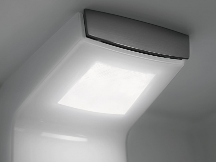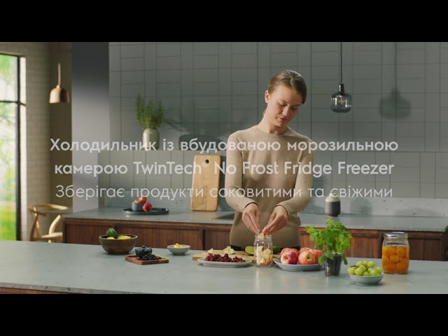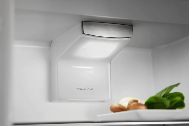 Вбудований холодильник Electrolux з нижнім розташуванням морозильної камери забезпечує стабільне охолодження та контроль вологості продуктів. Система TwinTech® No Frost використовує окремі контури для холодильного та морозильного відділень і зменшує втрату соковитості під час зберігання. Технологія DynamicAir вирівнює температуру в камері завдяки циркуляції повітря. Сенсорна електронна панель забезпечує швидкий доступ до налаштувань температури та режимів.