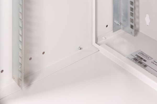 Шафа DIGITUS 19", 12U серії SOHO PRO призначена для організації мережевого обладнання в домашніх та офісних умовах. Модель оснащена перфорованими металевими дверима та кабельними вводами у верхній і нижній частинах. Усередині встановлено дві пари оцинкованих профільних рейок 483 мм із регулюванням по глибині. Корпус виконаний зі сталі товщиною до 1,5 мм із порошковим покриттям сірого кольору. Збірка здійснюється за кілька етапів відповідно до інструкції.