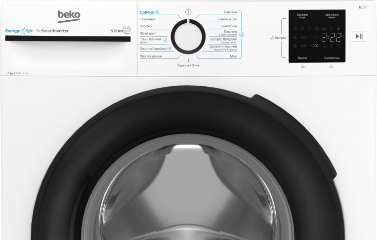 Опис Пральна машина Beko фронтальна, 7кг, 1200, B, 50см, дисплей, інвертор, пара, білий