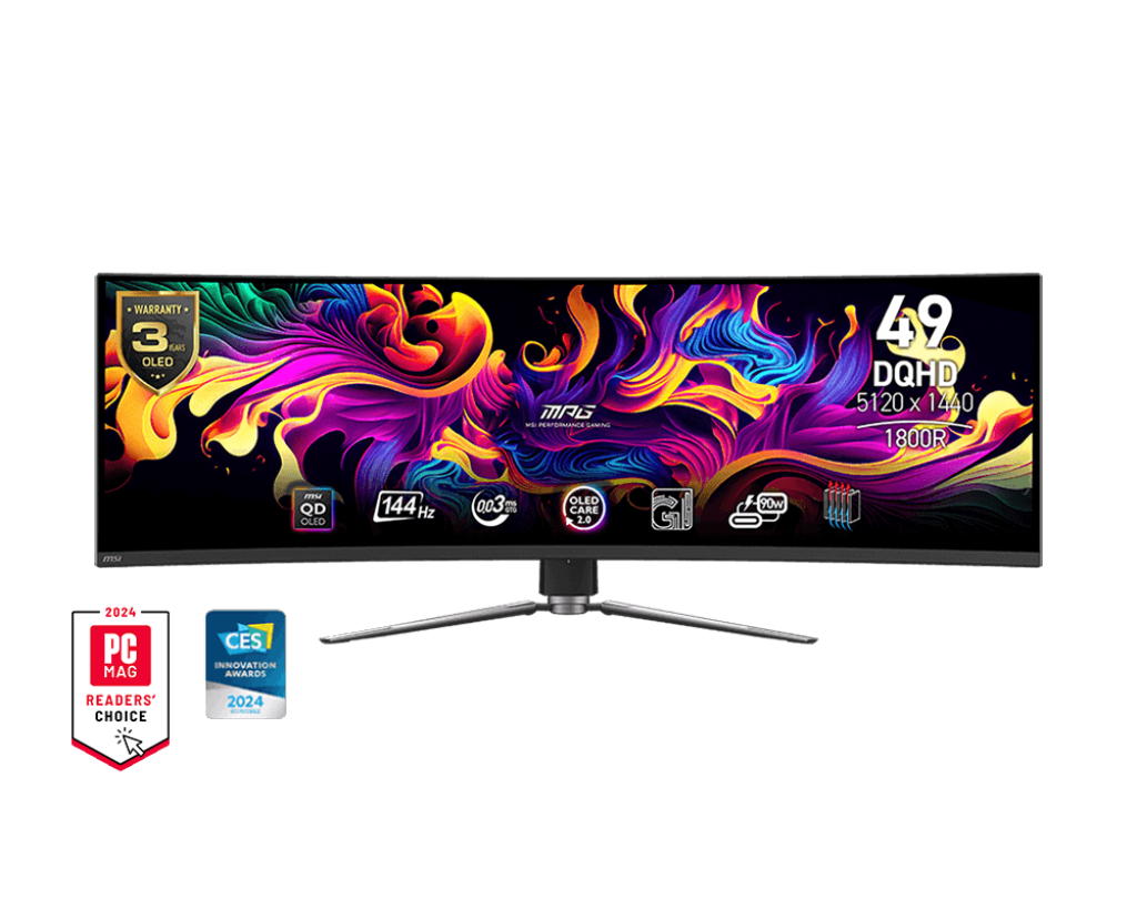 Монитор MSI 49" MPG 491CQP 2xHDMI, DP, USB-C, 2xUSB, QD-OLED, 5120x1440, 32:9, 144 Гц, 0.03 мс, sRGB 146%, CURVED, AdaptiveSync, HAS, HDR400
