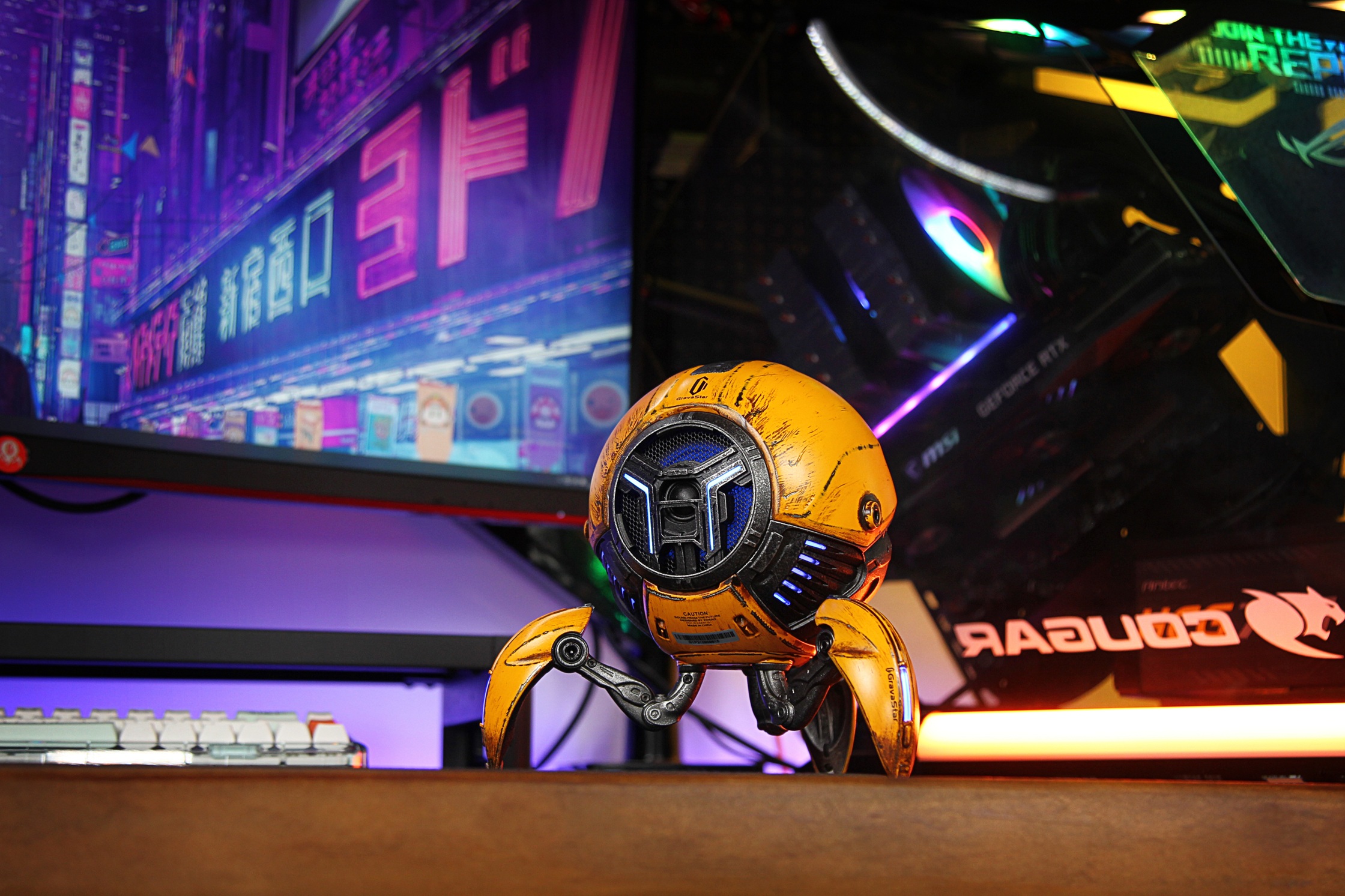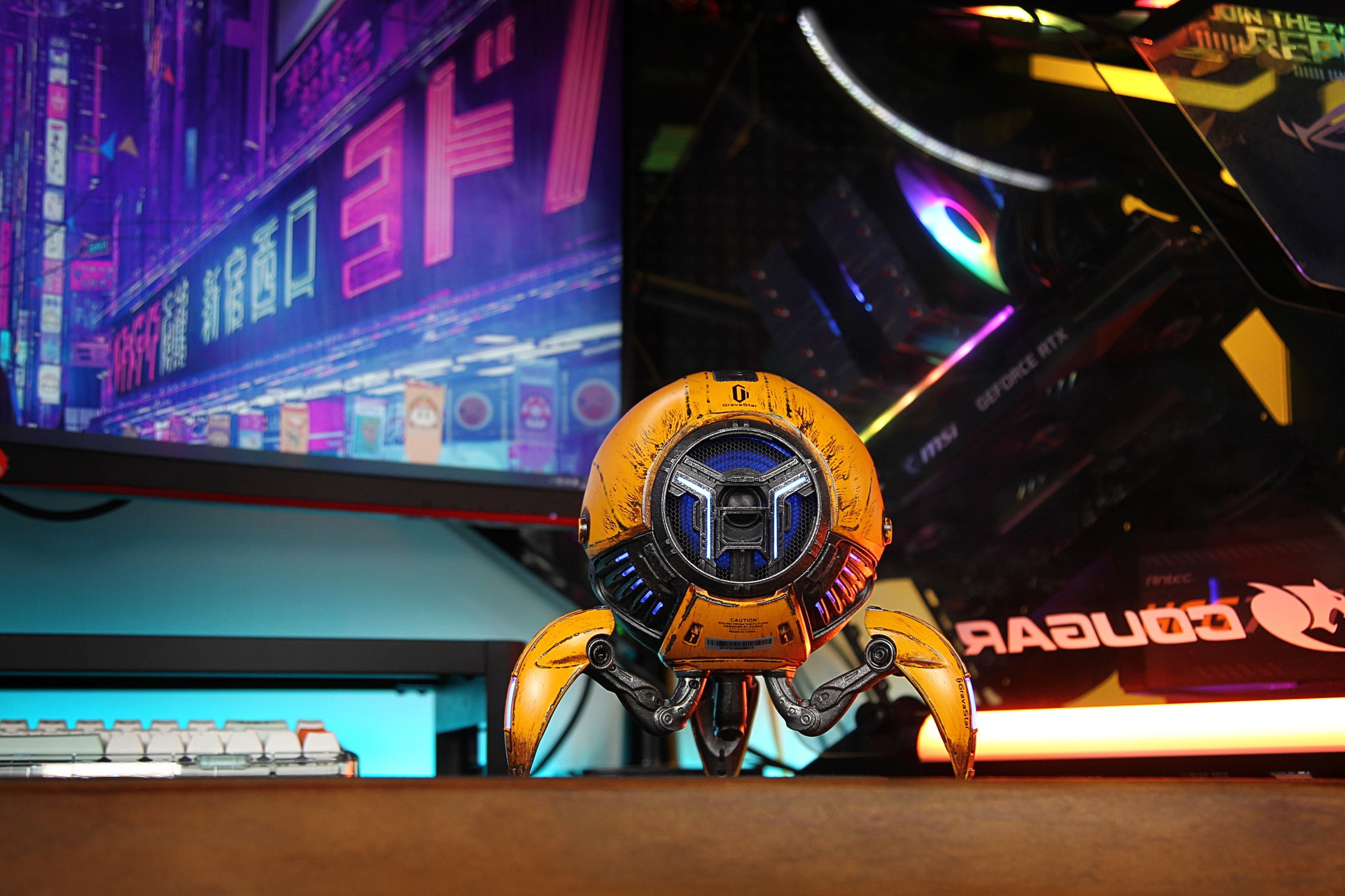 Gravastar Mars Pro 2 поєднує потужне звучання та нестандартний дизайн, натхненний науковою фантастикою. Корпус із цинкового сплаву забезпечує міцність і стійкість, а телескопічні ніжки допомагають зменшувати вібрації. Аудіоалгоритми DSP формують збалансовану звукову сцену з виразними басами та чистими високими частотами. Система RGB-підсвічування з кількома режимами дозволяє налаштовувати атмосферу під настрій музики. Підтримка стереопари відкриває можливість об’ємного звучання.