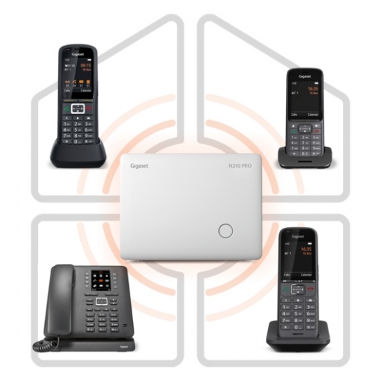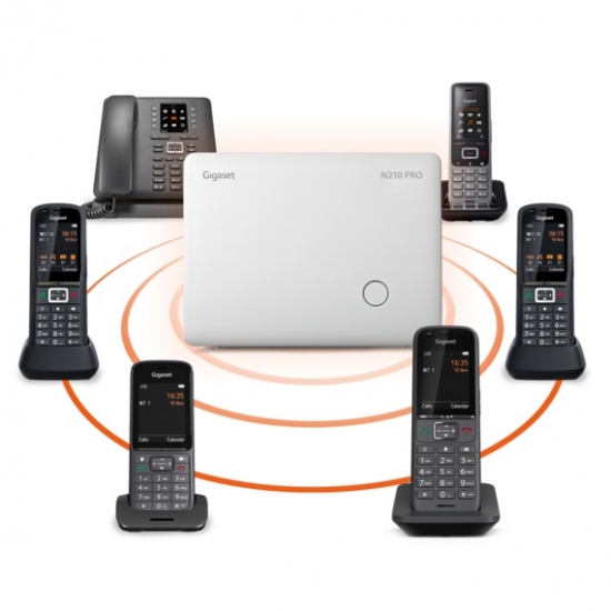 Gigaset N210 PRO — аналогова DECT-базова станція для малого офісу або домашнього робочого простору. Вона підтримує до шести бездротових трубок і дозволяє здійснювати два паралельні дзвінки. Компактний корпус дає змогу зручно розмістити пристрій на столі або на стіні. Підтримка стандартів DECT/GAP забезпечує сумісність із професійними трубками. Станція підходить для щоденного робочого зв’язку.