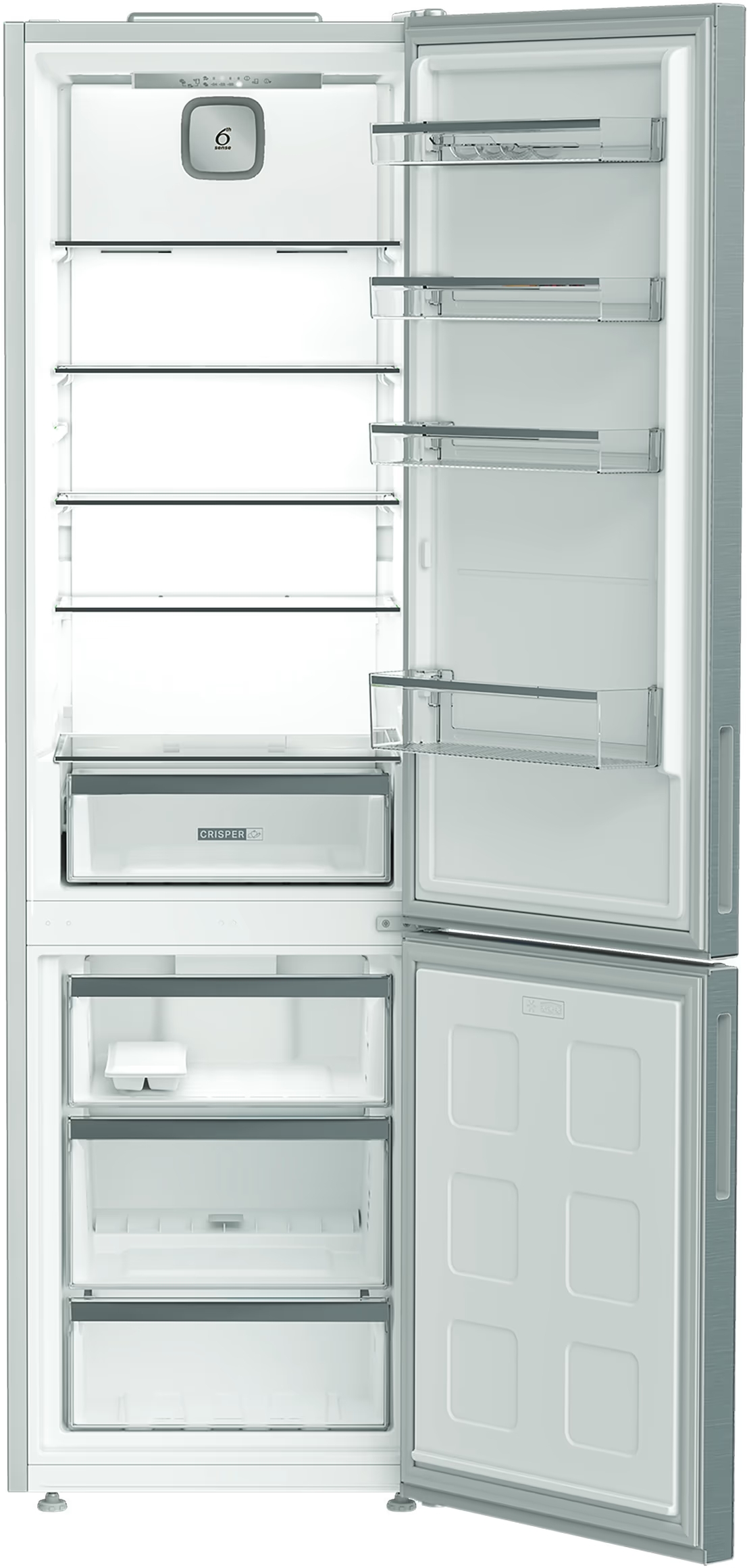 Тип: холодильник з морозильником, холодильник двокамерний; Клас енергоспоживання: A++; Управління: електронне; Загальний об'єм: 324 л; Об'єм холодильної камери: 215 л; Об'єм морозильної камери: 109 л; Розташування морозильної камери: знизу; Функціональні можливості: Швидка заморозка, Захист від дітей, Швидке охолодження, Режим відпустки, Сигналізація двері, Нульова зона, Режим «Еко», вентиляція (активна); Колір: сріблястий, метал; Габарити (ВхШхГ): 186x59.5x66.5;