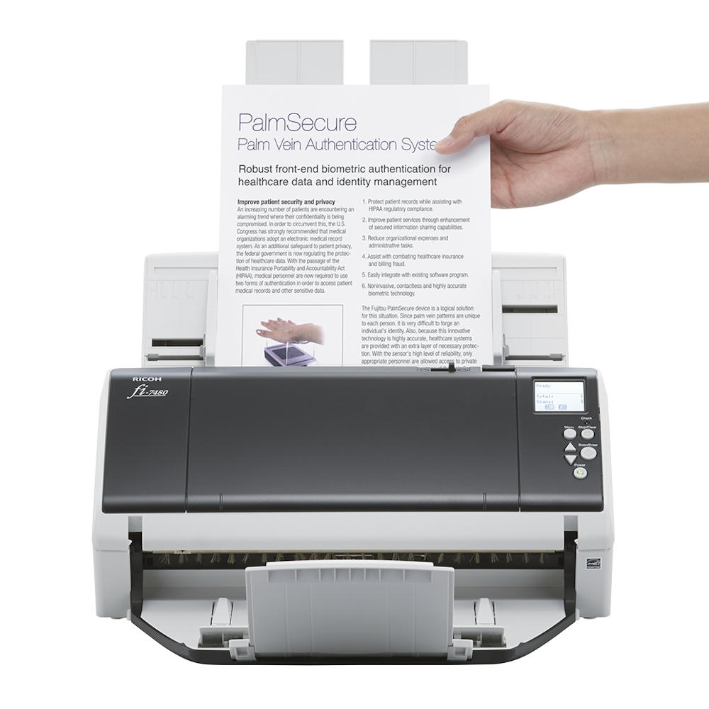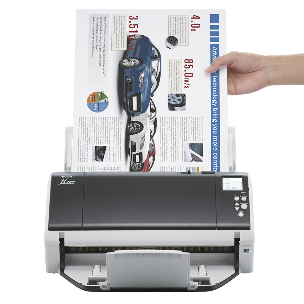 Ricoh fi-7480 – професійний документ-сканер для обробки великих обсягів паперових матеріалів формату до A3. Пристрій оснащений автоматичним подавачем і підтримує двостороннє сканування з високою швидкістю. Два CCD-сенсори забезпечують рівномірну якість зображення з обох сторін аркуша. Вбудовані механізми захисту паперу зменшують ризик пошкодження документів під час роботи. Сканер підтримує широкий спектр програмного забезпечення для обробки та керування сканами.