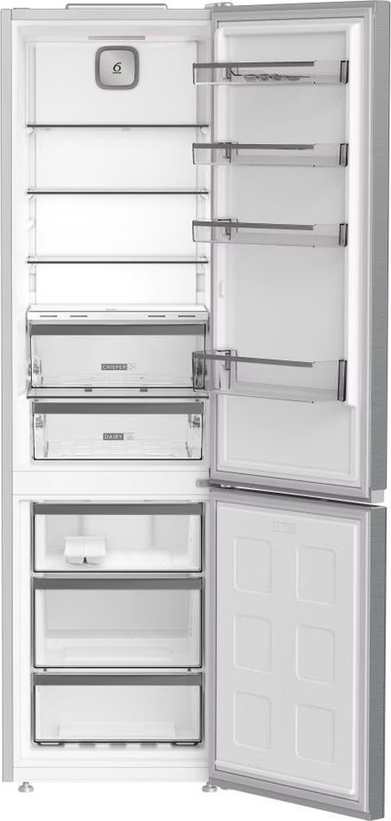 Холодильник Whirlpool WHK26362XP5E поєднує сучасний дизайн у кольорі нержавіючої сталі з продуманою внутрішньою організацією. Система Dual No Frost підтримує рівномірну температуру в обох камерах без утворення інею. Нульова зона створена для зберігання м’яса, риби та свіжих продуктів при стабільному мікрокліматі. Функції швидкого замороження, режиму «Відпустка» та енергозбереження підвищують зручність щоденного використання. Низький рівень шуму робить модель комфортною для житлових приміщень.