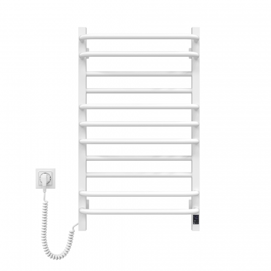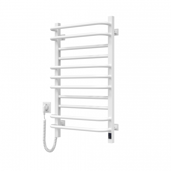 Мінімалістичний дизайн драбинки з квадратними боковими колекторами 30×30 мм та круглими перемичками 20×20 мм. Зручне ліве розташування шнура живлення. Сенсорний терморегулятор Sensor з вбудованим таймером для легкого керування. Максимальна робоча температура 55 °C – безпечна для дотику та ефективна для сушіння рушників. Гарантія від виробника 60 місяців.