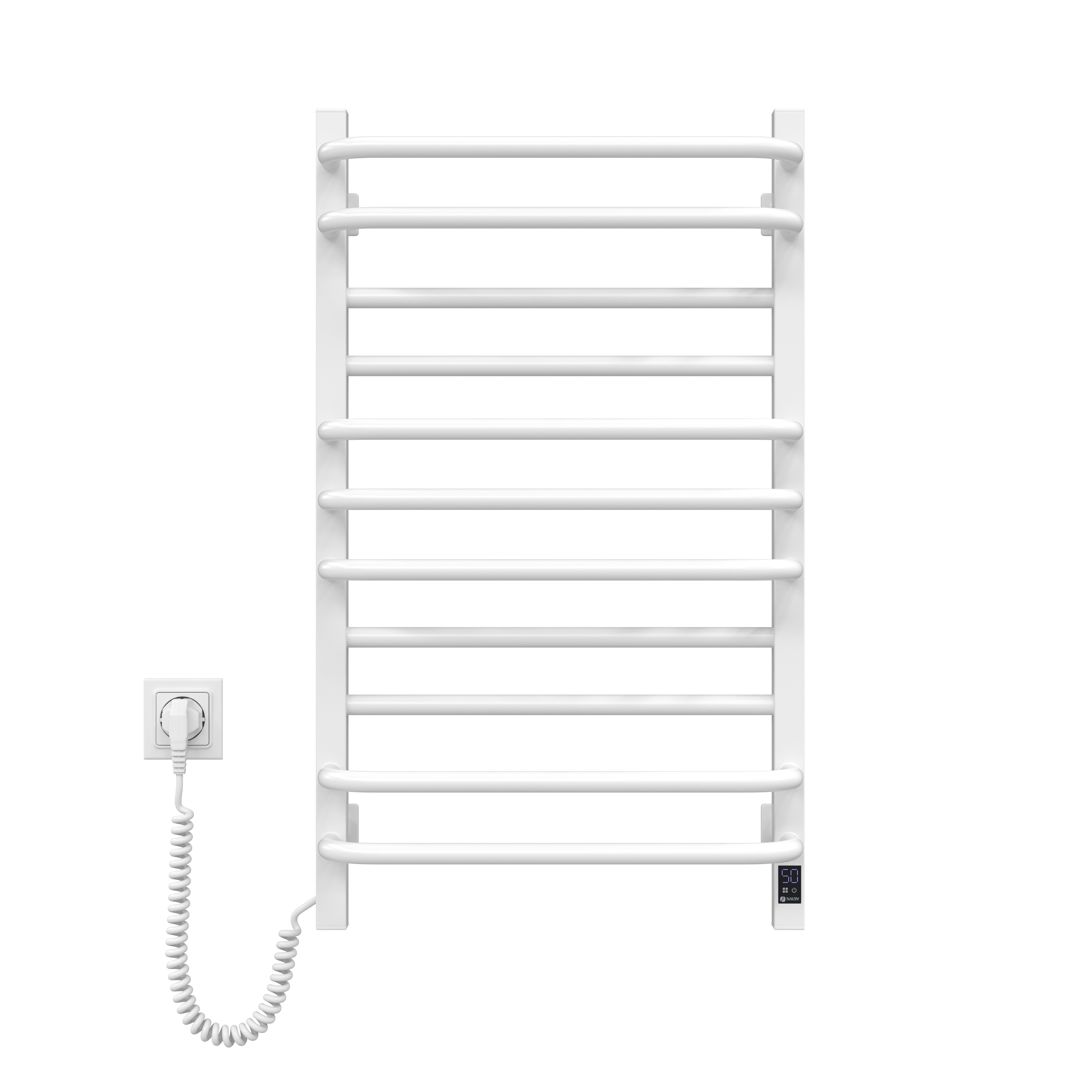 Опис Рушникосушка Navin електрична Грандіс, 800х480х161мм, таймер-регулятор, сталь, білий, ліве підключення