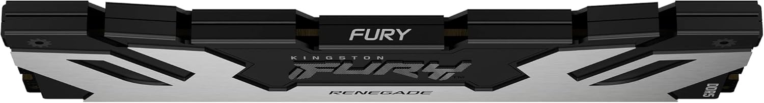 Модуль виконаний у стриманому сріблястому дизайні з ефективним алюмінієвим радіатором, що підкреслює преміальний стиль серії FURY Renegade та сприяє стабільному тепловідведенню. Форм-фактор DIMM гарантує широку сумісність із сучасними материнськими платами та просте встановлення.