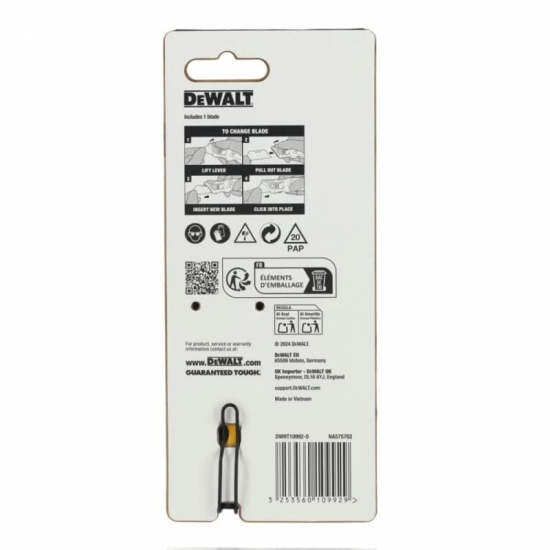 Будівельний ніж DeWALT DWHT10992-0 використовується для виконання щоденних оздоблювальних і монтажних робіт. Інструмент застосовується для різання картону, плівки, стрічок, шпалер, утеплювача та інших листових і рулонних матеріалів. Складна конструкція дозволяє безпечно переносити ніж між операціями та швидко підготувати його до роботи.