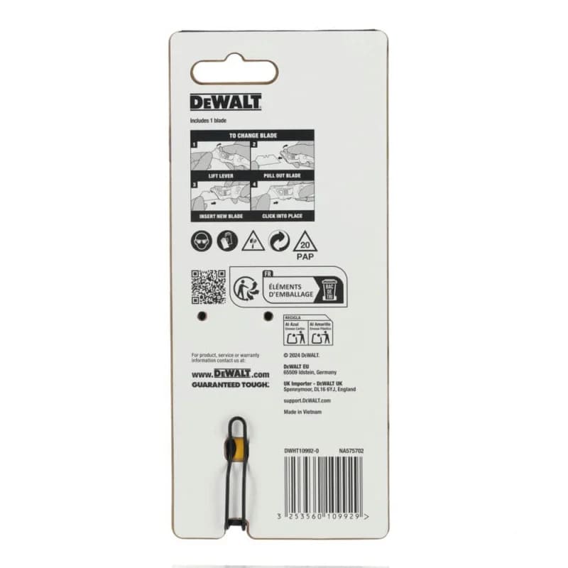 Металева рукоятка стійка до зношування і механічних навантажень. Ергономічна форма разом із двосторонньою дротяною кліпсою забезпечує зручне носіння в кишені. Вбудований відсік дозволяє зберігати до п’яти запасних лез, а можливість прив’язування підвищує безпеку під час роботи на висоті.
