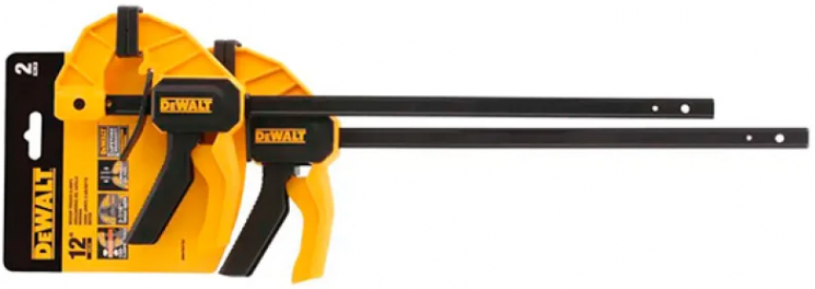 Набір струбцин DeWALT DWHT0-83158 — дві легкі M-подібні тригерні струбцини довжиною 300 мм. Забезпечують швидкий затиск однією рукою, зручні для склеювання, складання та монтажних робіт.