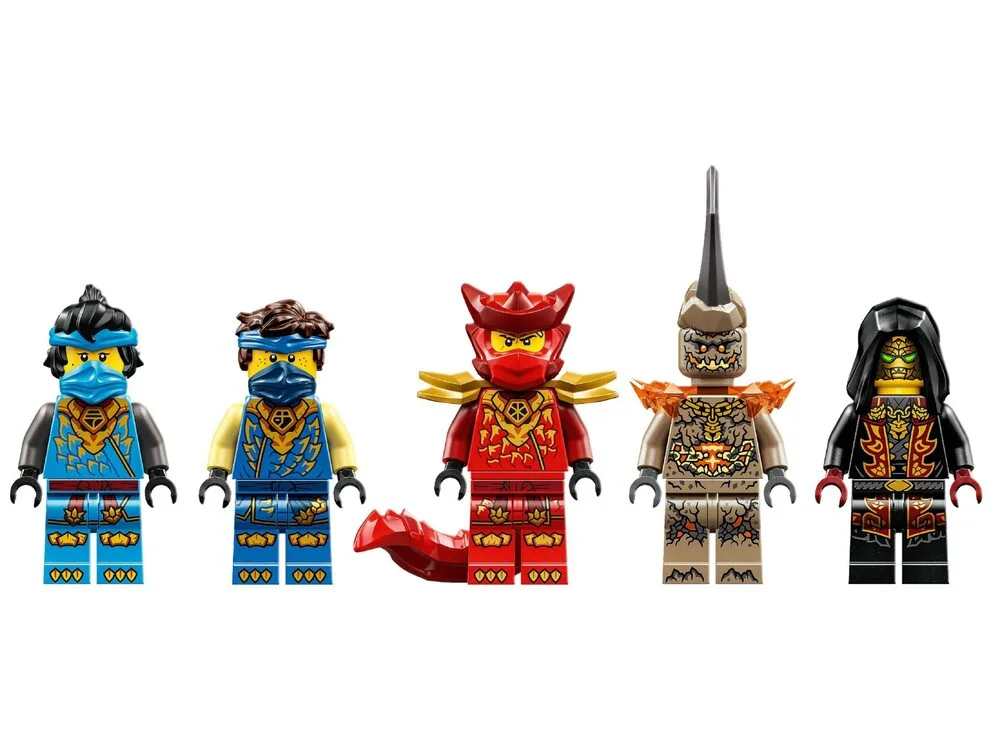 Цей набір LEGO® NINJAGO® дозволяє зібрати автомобіль-трансформер Джея з серії Dragons Rising. Іграшка має 2-в-1 конструкцію: класичний режим і трансформацію у «драконячий» вигляд із золотими елементами та обертовими сюрікенами. У комплекті 5 мініфігурок для сюжетних ігор із героями та антагоністами. Набір містить 387 деталей і призначений для дітей від 8 років.
