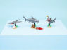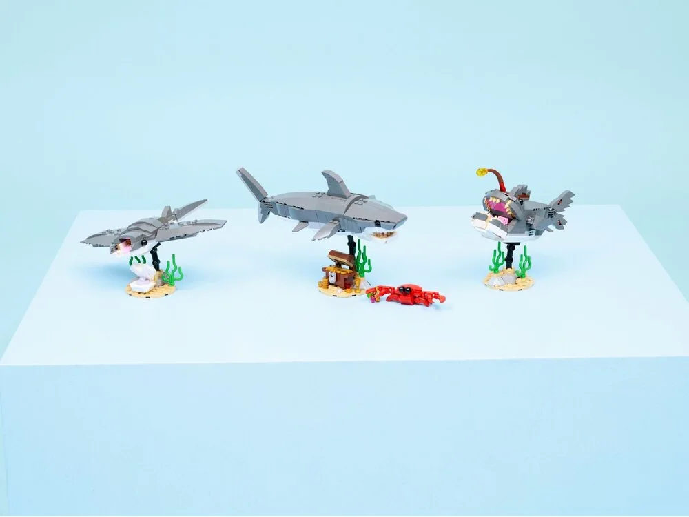 Перший варіант складання — акула з рухомими елементами, встановлена на підставці зі скринею скарбів і крабом. Ця сцена навіює сюжети про морські пригоди та загублені багатства. Другий варіант — риба-вудильник на підставці з морськими рослинами, що передає атмосферу глибин океану. Третя модель — скат манта на підставці з мушлею, який асоціюється зі спокійним ковзанням у воді.
