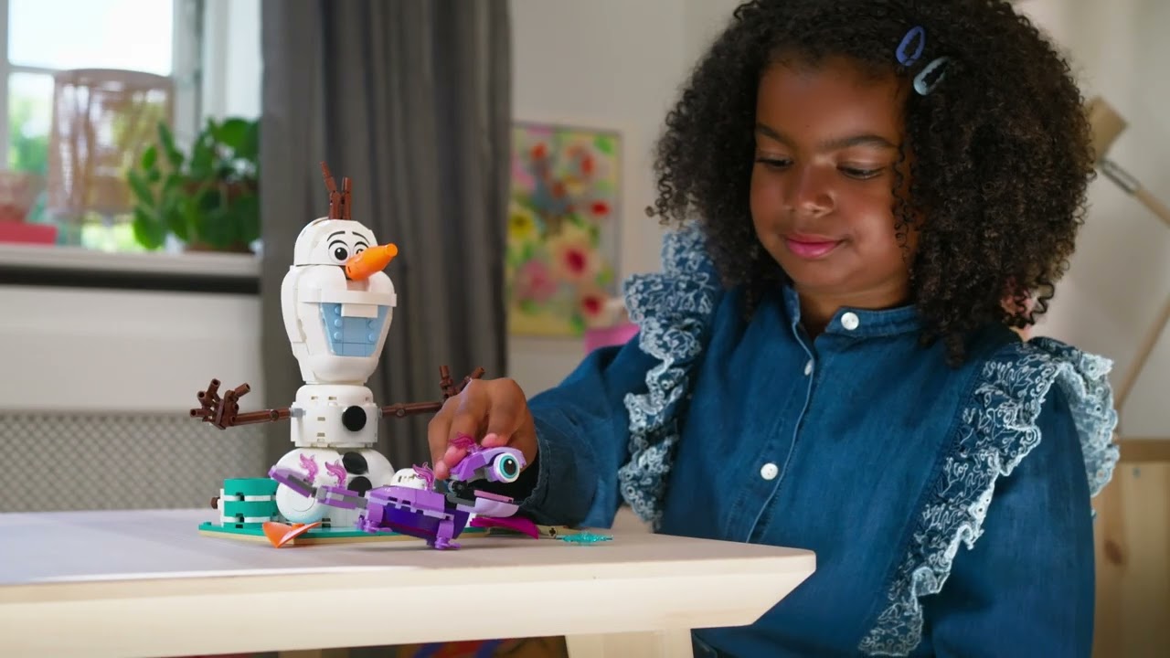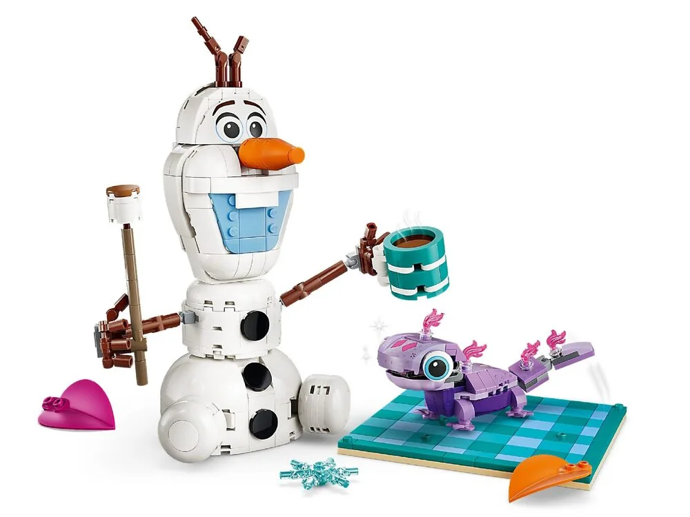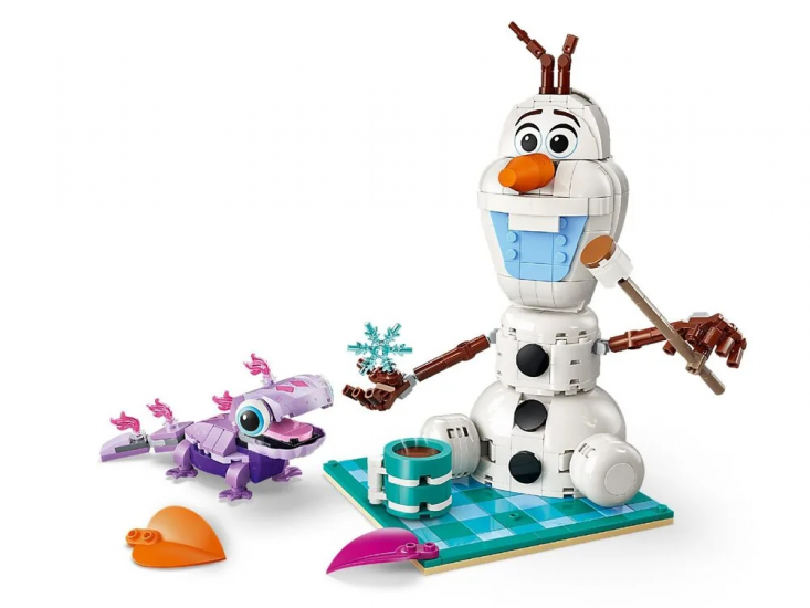 Набір LEGO® Disney Frozen Веселощі на пікніку Олафа та Бруні (43287) переносить дітей від 7 років у сонячний, теплий день у світі «Крижаного серця», де улюблені персонажі влаштовують пікнік. Головні герої — дві рухомі фігурки: Олаф, веселий сніговик з рухомими руками та виразним обличчям, і Бруні, маленька вогняна саламандра з рухомим ротом і хвостом. Вони «сидять» на яскравій ковдрі для пікніка, зібраній з кубиків у теплих кольорах, що створює контраст з зимовими персонажами та додає літнього настрою.