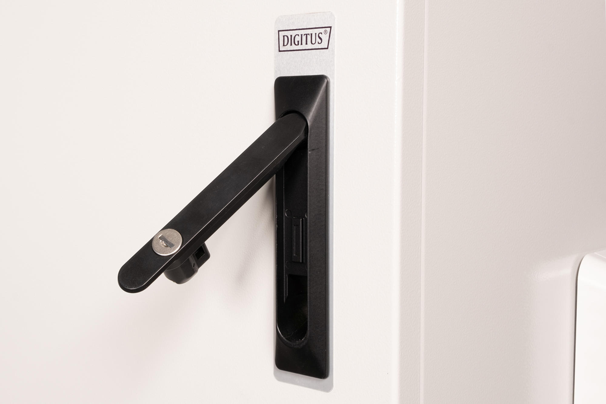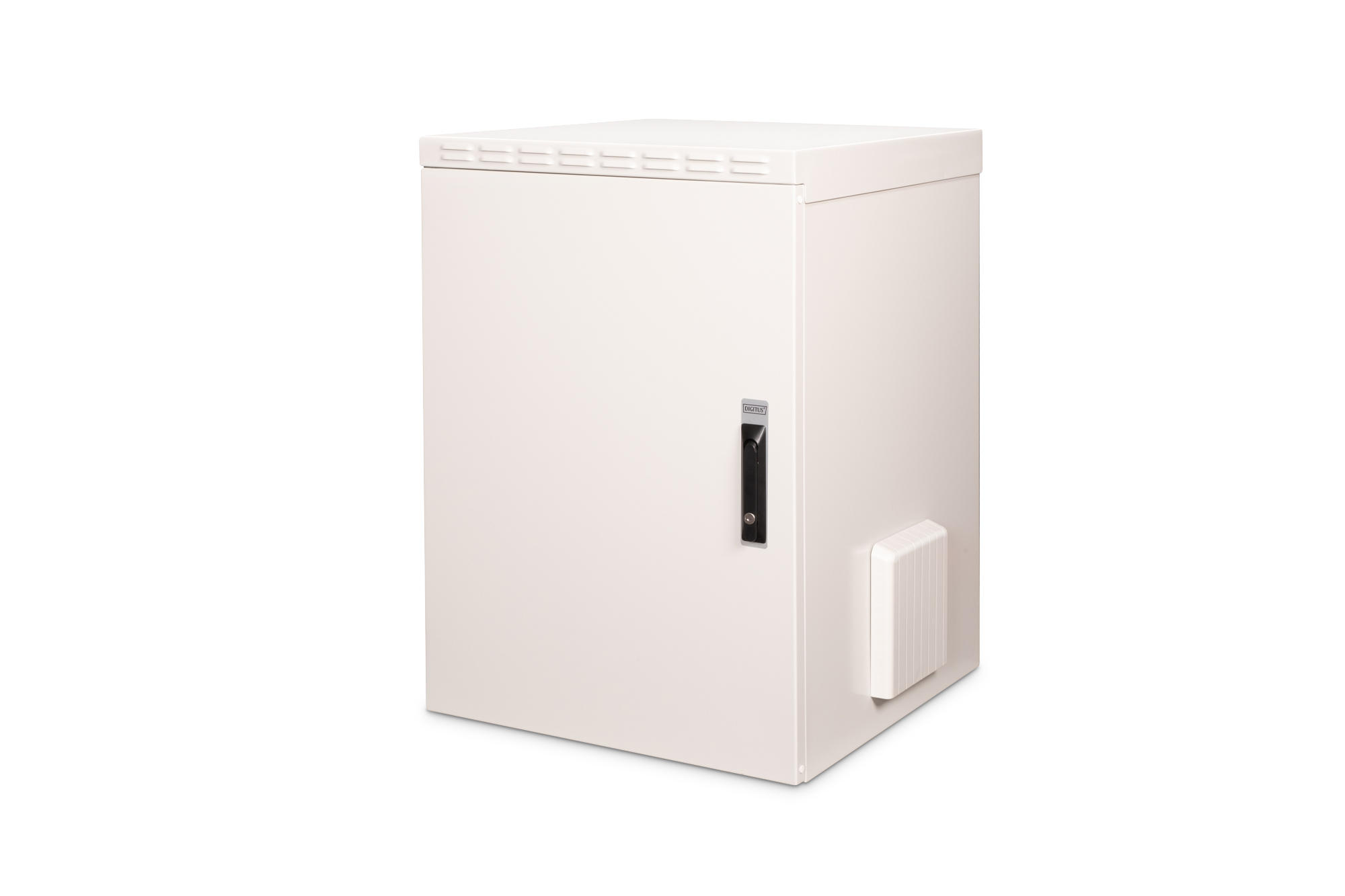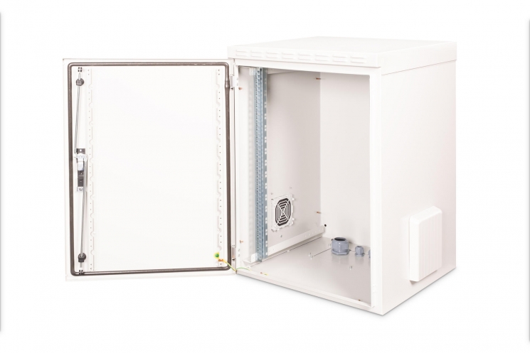 Настінна шафа DIGITUS DN-1916U-6/6-I-OD використовується для встановлення мережевого та серверного обладнання у зовнішньому середовищі. Корпус зі зварної листової сталі має порошкове покриття та підвищену жорсткість. Передні двері оснащені заземлюючим проводом, ущільнювальною системою та підсилюючими елементами. Регульовані 19-дюймові рейки забезпечують зручне розміщення обладнання. Конструкція доповнена вентиляційними отворами та даховим навісом.