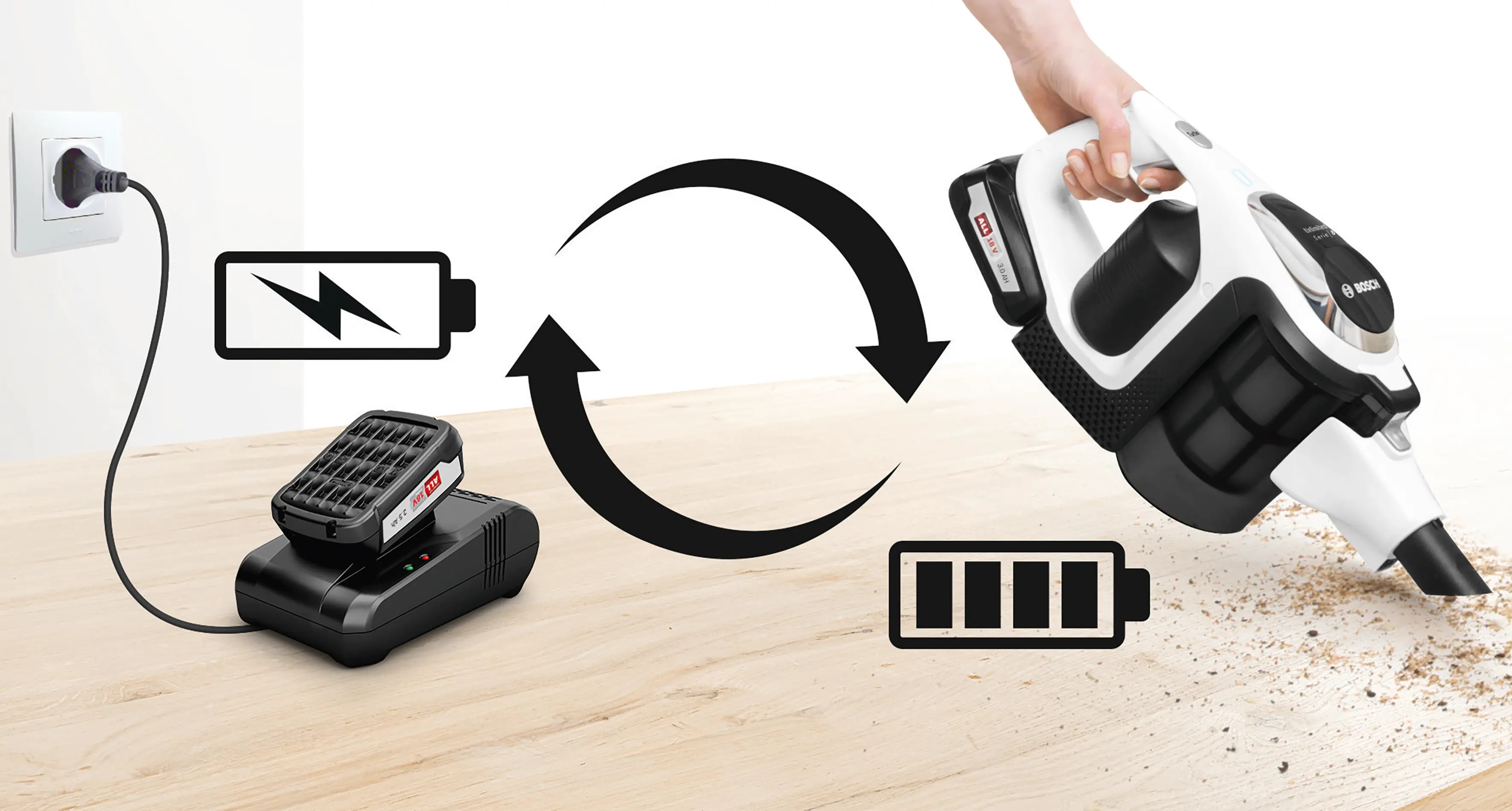Головна - Побутова техніка, інструменти та товари для дому - Техніка для догляду за будинком і одягом - Аксесуари до пилососів - Bosch - Зарядний пристрій для акумуляторів пилососів Unlimited Серія 6 та Unlimited Gen2 Серія 8