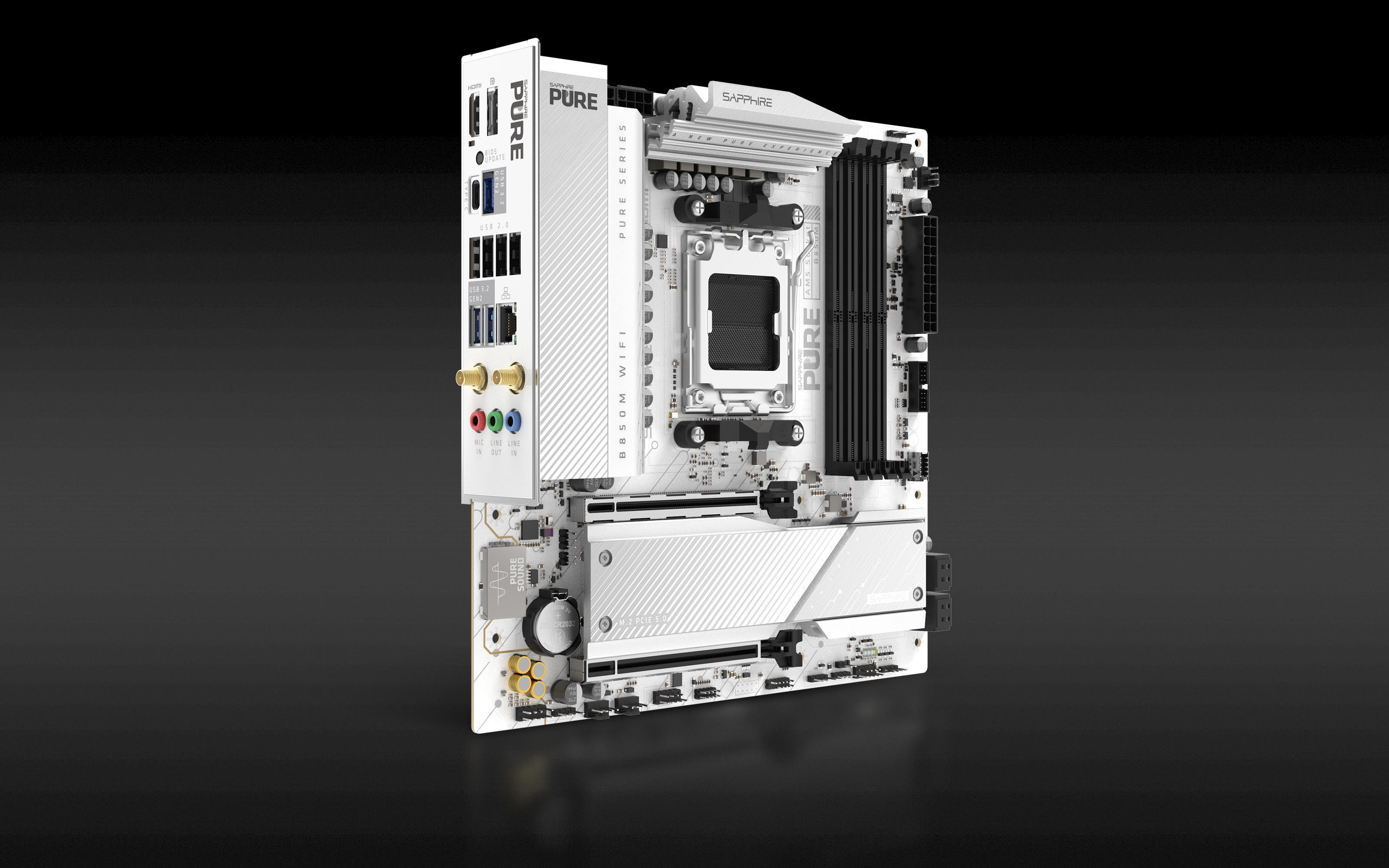 SAPPHIRE Motherboard PURE B850M WIFI sAM5 B850 4xDDR5 M.2 HDMI DP WiFi BT mATX білий