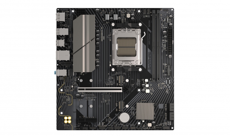 Материнська плата SAPPHIRE B650M-E побудована на чипсеті AMD B650 та сумісна з процесорами AMD Ryzen серій 7000, 8000 та 9000 для сокета AM5. Два слоти DDR5 підтримують до 96 ГБ оперативної памʼяті з розгоном до 7600 МГц. Для зберігання даних передбачено два розʼєми M.2, включаючи PCIe 5.0, а також чотири порти SATA. Плата оснащена інтерфейсами HDMI і DisplayPort та аудіосистемою 5.1. Форм-фактор micro-ATX дозволяє створювати компактні системи без втрати функціональності.