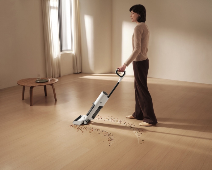 Xiaomi Truclean W20 Wet Dry Vacuum — вертикальний акумуляторний пилосос для прибирання твердих рівних підлог. Пристрій одночасно збирає сухе сміття та миє поверхню, що зменшує кількість проходів під час прибирання. Роликова миюча щітка обертається зі швидкістю 500 об/хв і омивається водою під час роботи, а зібрана брудна рідина потрапляє в окремий резервуар.