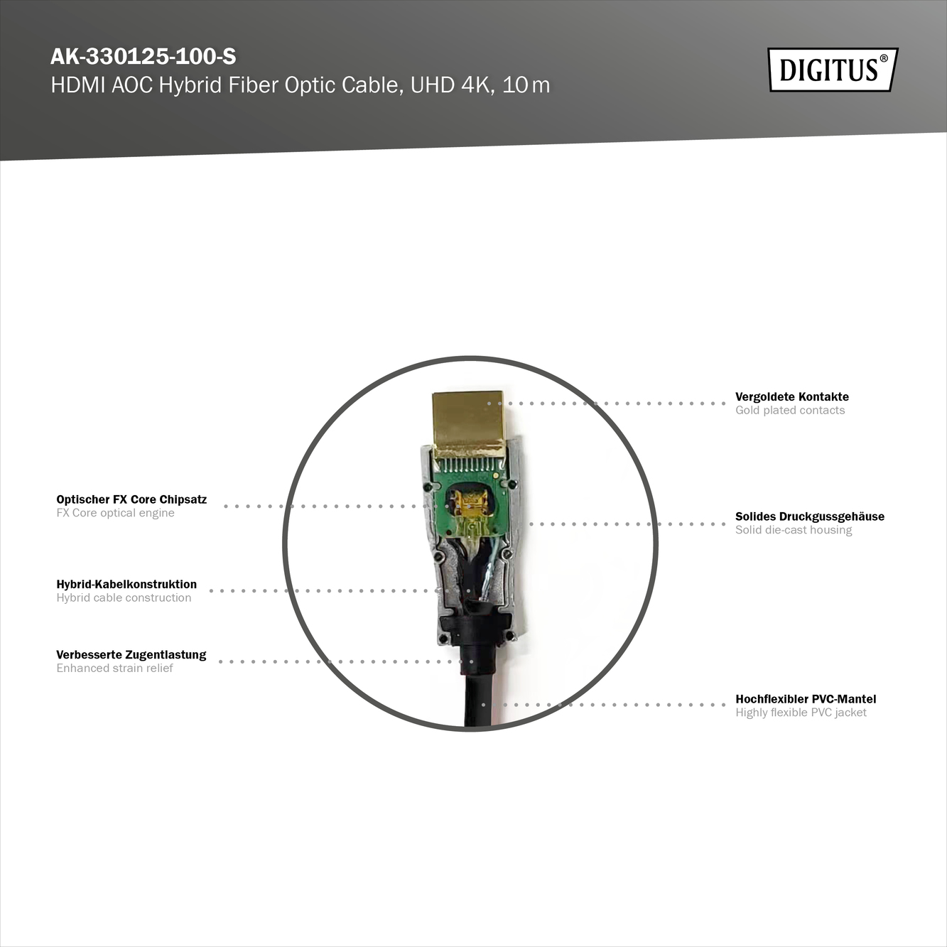 Кабель HDMI High Speed, тип A, з підсилювачем. Цей кабель з активним підсилювачем, придатний для Full HD (1080p) та 3D, служить для підключення аудіо-відео-пристроїв, як, наприклад, Blu-Ray-програвач, ігрові приставки і т.д. до телевізора, монітора або ПК.