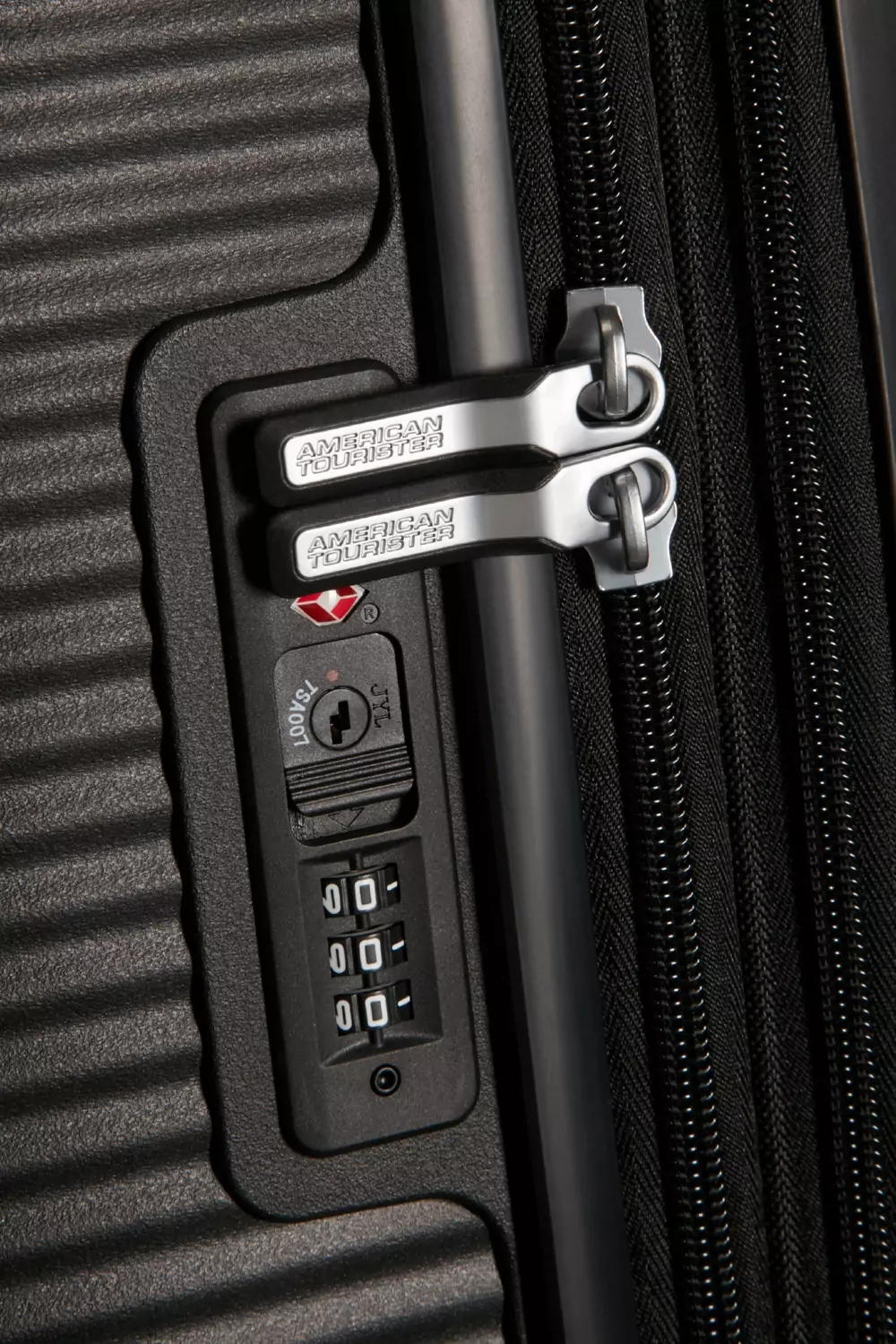 Безпеку вмісту підтримує вбудований тризначний кодовий замок TSA. Конструкція замка дозволяє сервісний огляд багажу без пошкодження корпусу.
