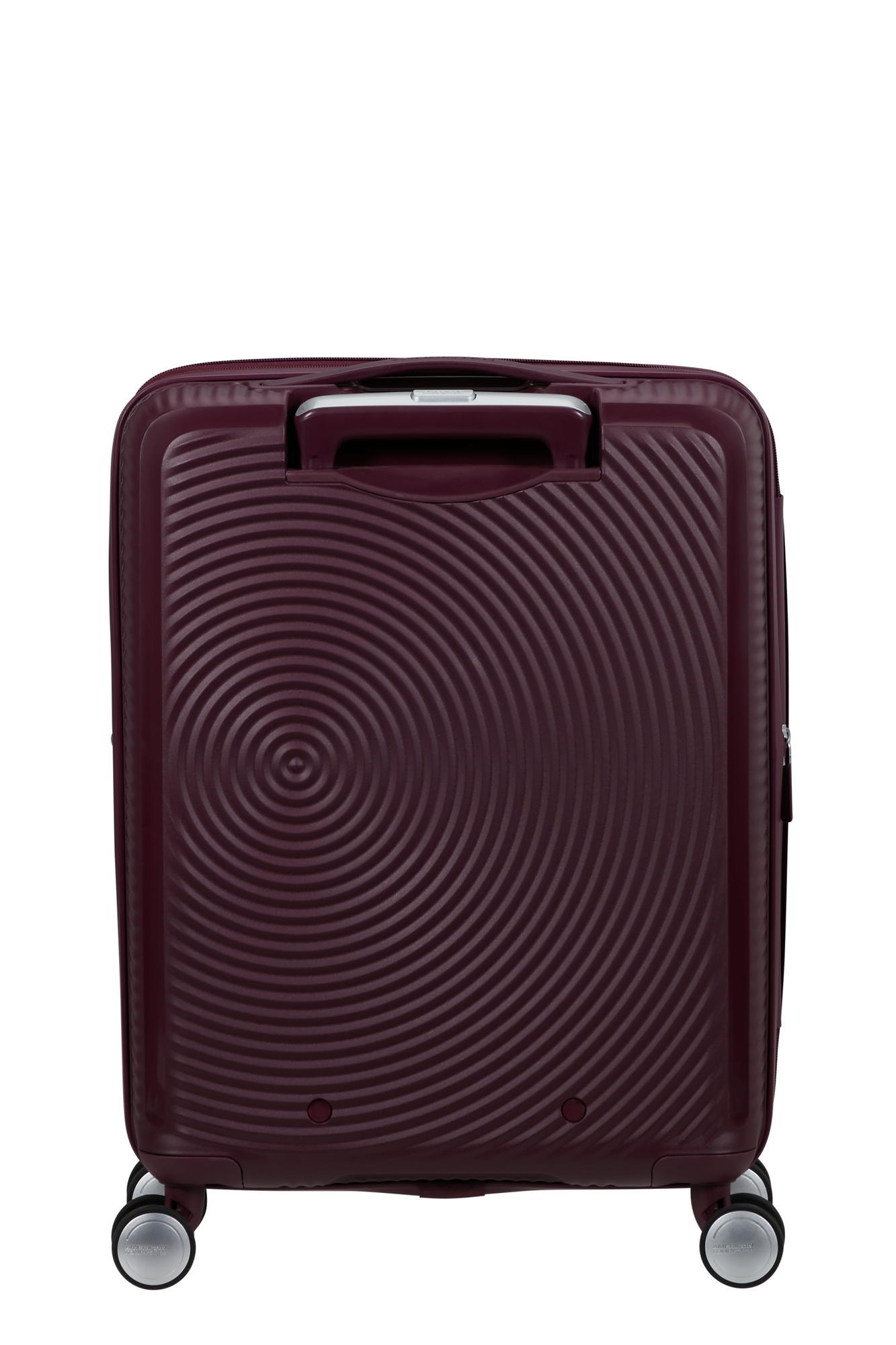 Зовнішня поверхня має рельєфний концентричний візерунок. Фактура зменшує помітність слідів експлуатації та полегшує візуальну ідентифікацію багажу. Жорстка оболонка тримає форму під час завантаження.