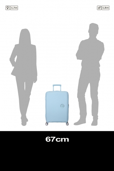 Валіза American Tourister Soundbox M — жорстка дорожня модель середнього розміру з корпусом із поліпропілену. Підходить для поїздок на кілька днів і авіаперельотів із багажним відділенням. Розширення на блискавці збільшує місткість із 71,5 до 81 л. Чотири подвійні колеса та телескопічна ручка спрощують транспортування. Вбудований TSA-замок підтримує контроль без пошкодження корпусу.