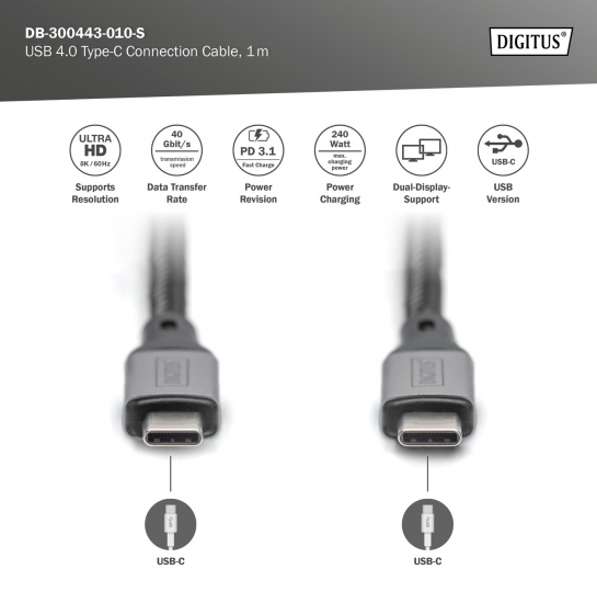 Кабель DIGITUS USB 4.0 (Type-C/Type-C) 1м, чорний