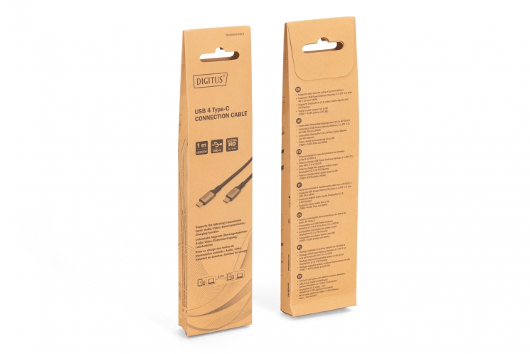 Кабель DIGITUS USB 4.0 Type-C / Type-C призначений для одночасного передавання даних, відео, аудіо та живлення через один інтерфейс. Підтримується пропускна здатність до 40 Гбіт/с і робота з відео у форматі 8K при 60 Гц. Реалізована сумісність із Thunderbolt 3 та попередніми версіями USB. Алюмінієві роз’єми та подвійне екранування забезпечують стабільність з’єднання в щоденному використанні.