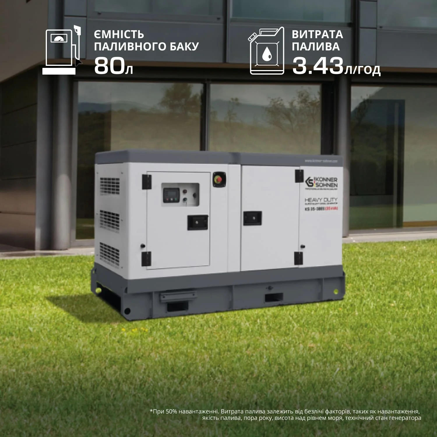 | Витрати палива | 3.43 л/год (при 50% навантаженні) |