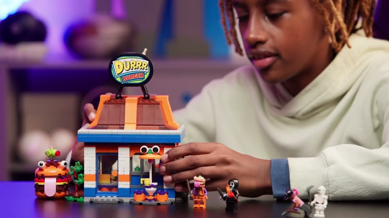 LEGO® Fortnite® Durrr Burger ресторан (77076) відтворює впізнавану будівлю зі світу Fortnite у вигляді детальної модульної конструкції. Будівлю можна переналаштовувати, змінюючи конфігурацію та відкриваючи внутрішні елементи для різних ігрових сценаріїв.