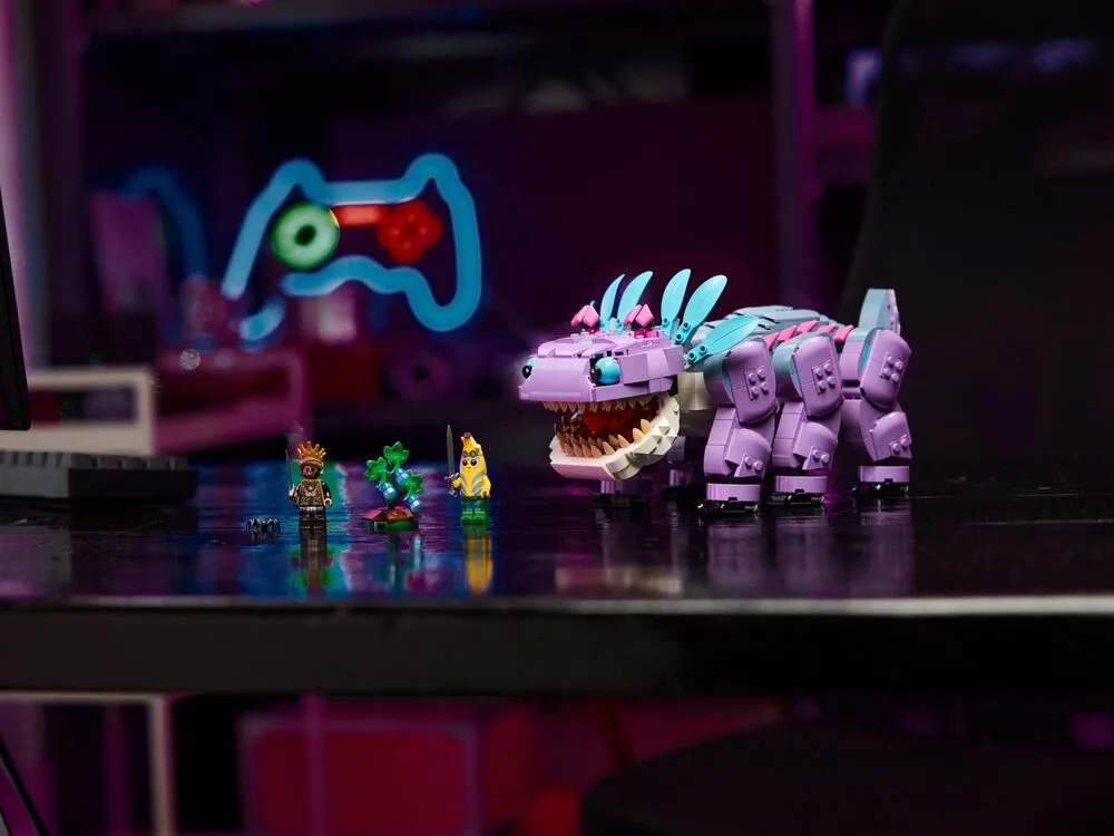 LEGO® Fortnite® Klombo (77077) відтворює одного з найвідоміших персонажів світу Fortnite у великому форматі збірної моделі. Конструкція передає характер істоти завдяки рухомим кінцівкам, хвосту, що обертається, і роту, який відкривається для різних сцен взаємодії.