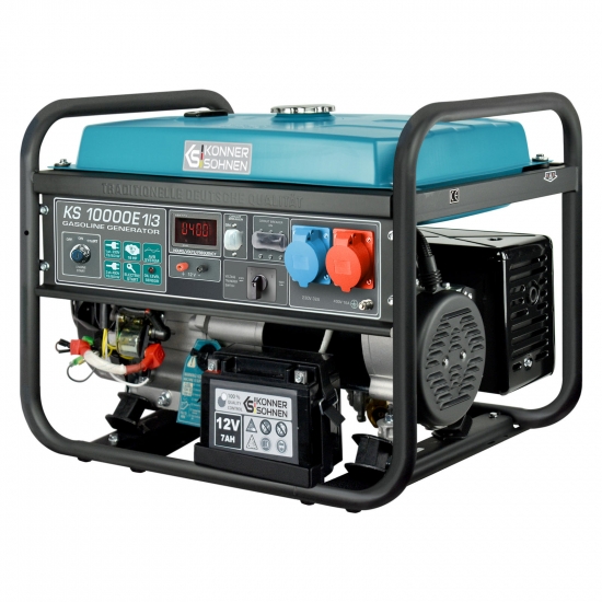Бензиновий генератор Könner & Söhnen KS 10000E 1/3 розроблений для забезпечення електроенергією обладнання з різними вимогами до фазності. Система VTS дозволяє використовувати установку як у однофазному, так і в трифазному режимі без складних переналаштувань.