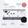 Шумозахисний та вологозахисний кожух із гальванічним антикорозійним покриттям знижує рівень шуму та захищає обладнання від атмосферних впливів. Конструкція корпусу передбачає отвори для транспортування та надійної фіксації під час монтажу.