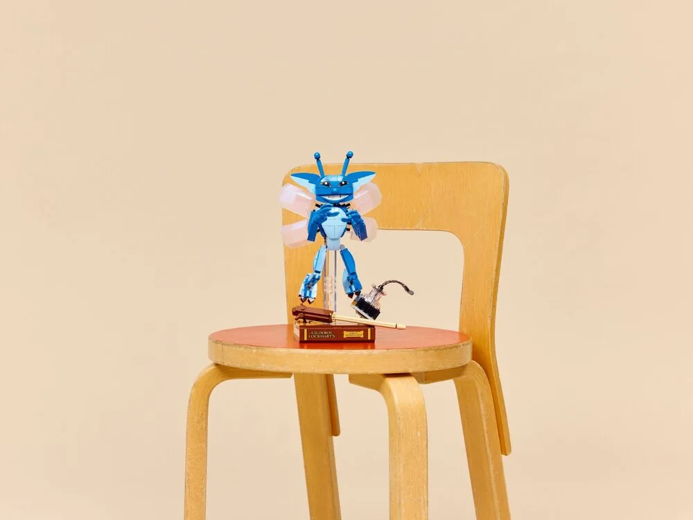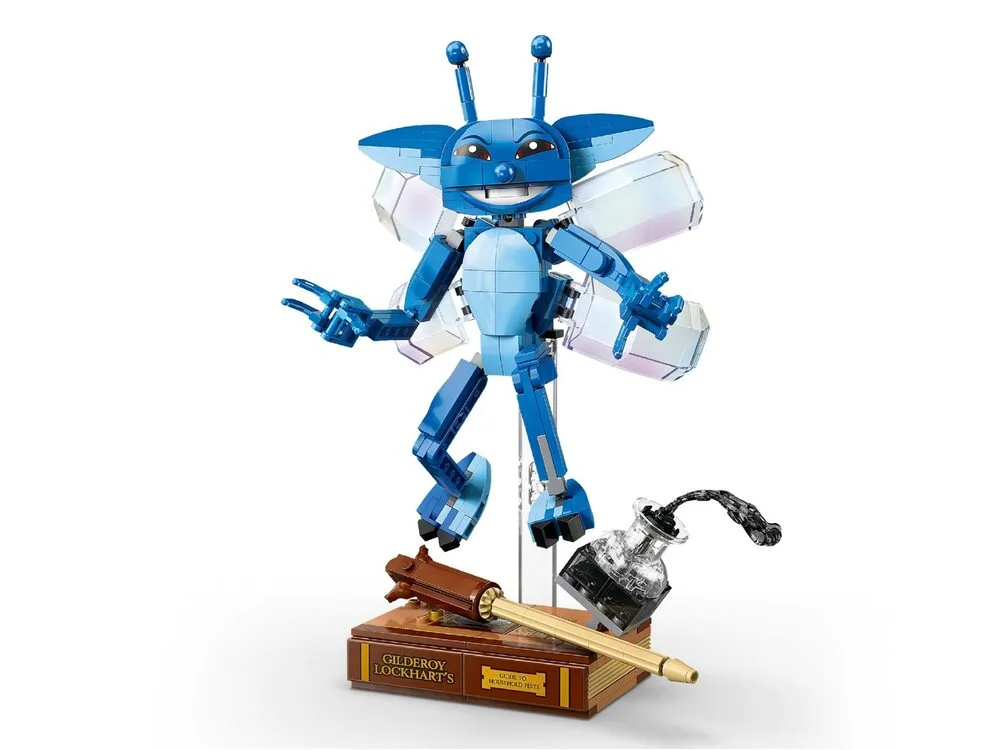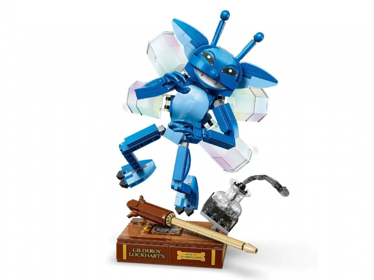 LEGO® Harry Potter™ Корнуельські піксі (76461) відтворює хаотичну сцену з уроку захисту від темних мистецтв, коли Ґільдерой Локарт випустив цих створінь із клітки. Модель виконана у масштабі 1:1, що робить її впізнаваною та наближеною до екранного образу.