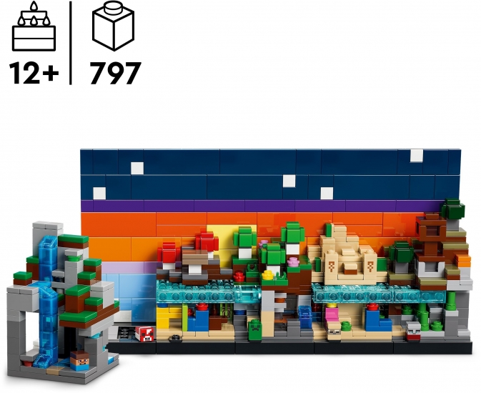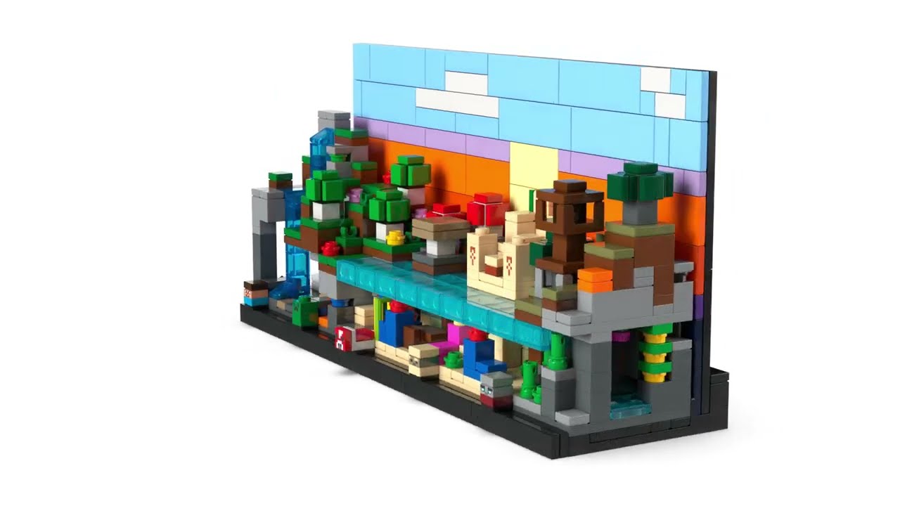 Набір пропонує поєднання елементів знайомого ігрового світу Minecraft із фізичним конструюванням, що дозволяє створювати динамічні сцени для гри чи демонстрації.