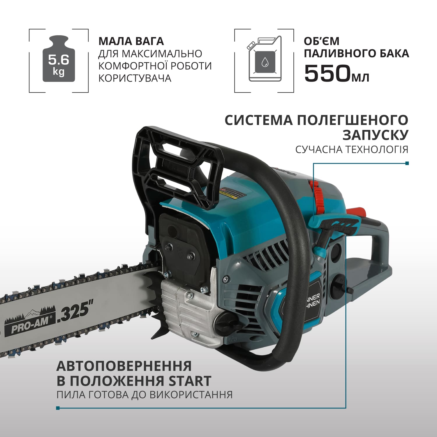 Пила бензинова Konner&Sohnen KS CS21G-16-1 40см 45см3 5.6кг